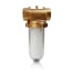 Köpp Husvannsfilter leveres standard med messingtopp og gjennomsiktig filterkopp. Kan benyttes til filtrering og fjerning av sedimenter, sand og faste partikler. Filterhuset leveres med lufteport og manometeruttak, samt 80 µm filterinnsats. Alternative filterpatroner er tilgjengelig, samt filterkopp i messing for høytemperaturinstallasjoner. Løsningen har mange ulike bruksområder, som for-filtrering til vanningsanlegg, pumper, renseanlegg etc.