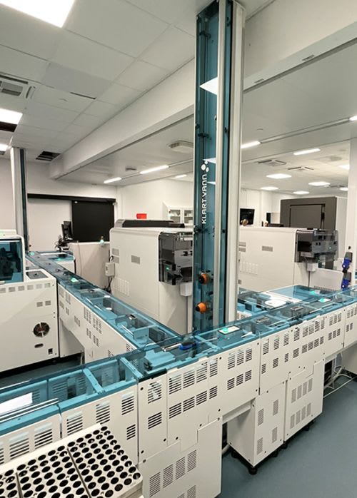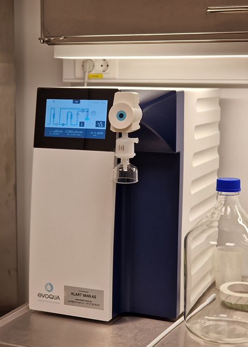 Klart Vann har utviklet en patentert Vie®-kanal for lukket tilførsel av ultrarent vann, strøm og data direkte fra himling og ned til analysemaskinene. Dette gir optimal hygiene og driftssikkerhet – og reduserer risiko for kontaminering i kritiske områder.